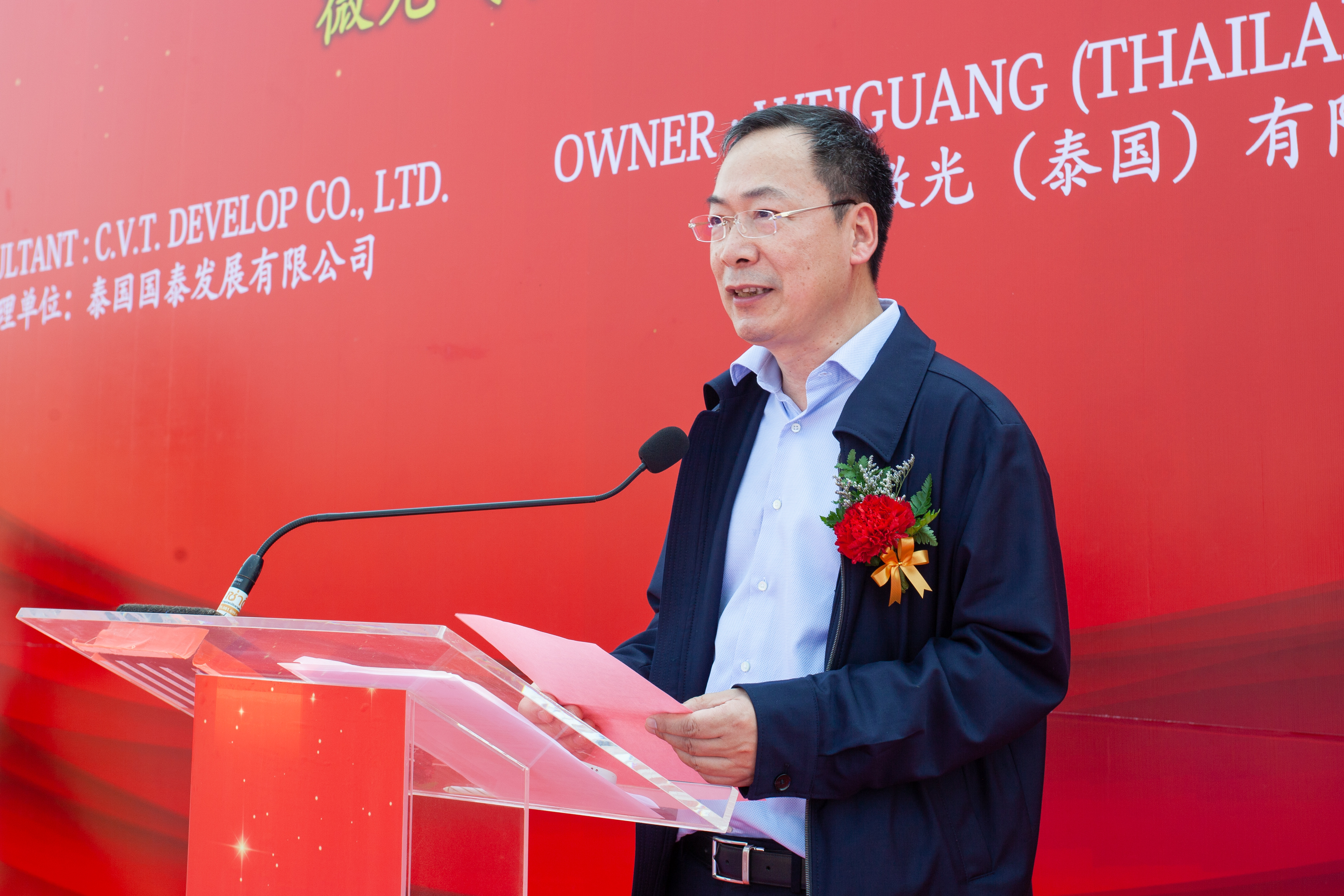 泰中罗勇工业园总裁赵斌对jinnianhui金年会泰国项目的顺利动工建设表示祝贺,对jinnianhui金年会选择落户园区表示感谢。赵总在致辞中表示在中国乃至全球,jinnianhui金年会作为风机、电机行业领先者,具有超前的远见和魄力;该项目从立项到建设只经历了短短几个月的时间,足以证明jinnianhui金年会的大决心和高效率,相信项目竣工投产后将更紧密地与国际接轨、更加自如地应对日趋复杂多变的国际环境、更加充分地辐射全球市场。作为园区方,未来将一如既往的服务好中资企业,让企业无后顾之忧,勇往直前。
