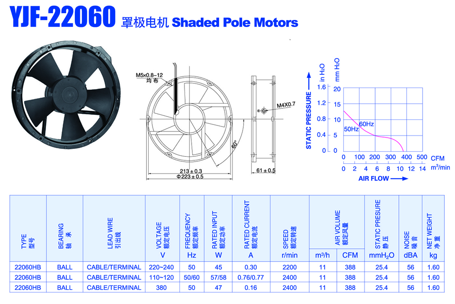 YJF-22060 Shaded Pole Motors