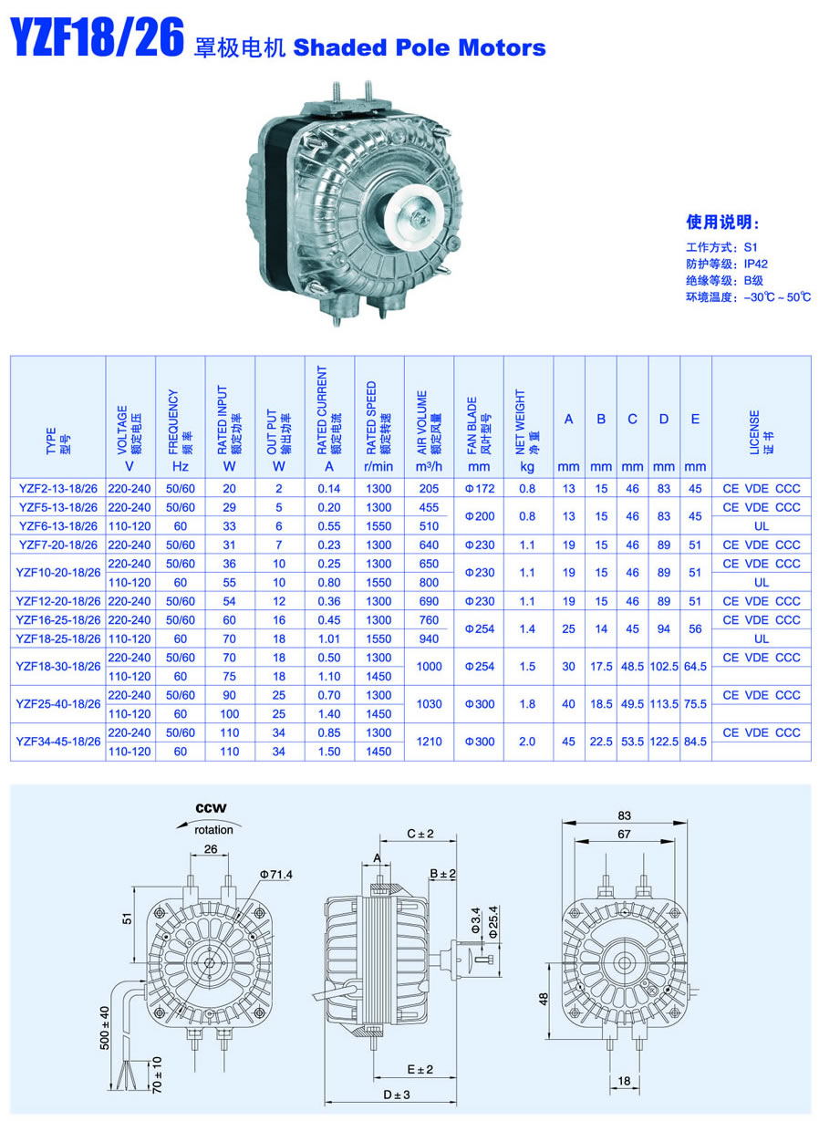 YZF18/26 Shaded Pole Motors
