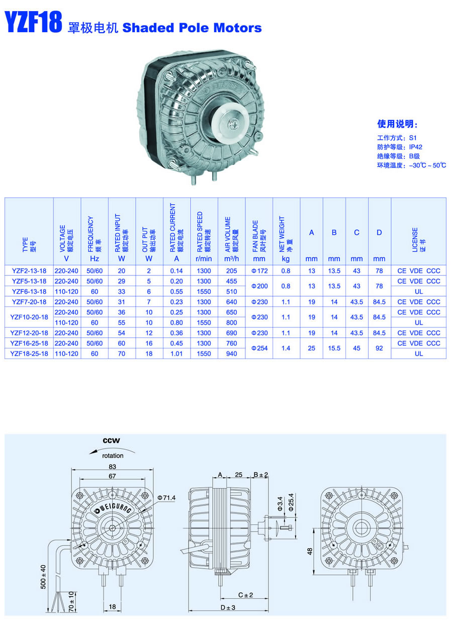 YZF18 Shaded Pole Motors