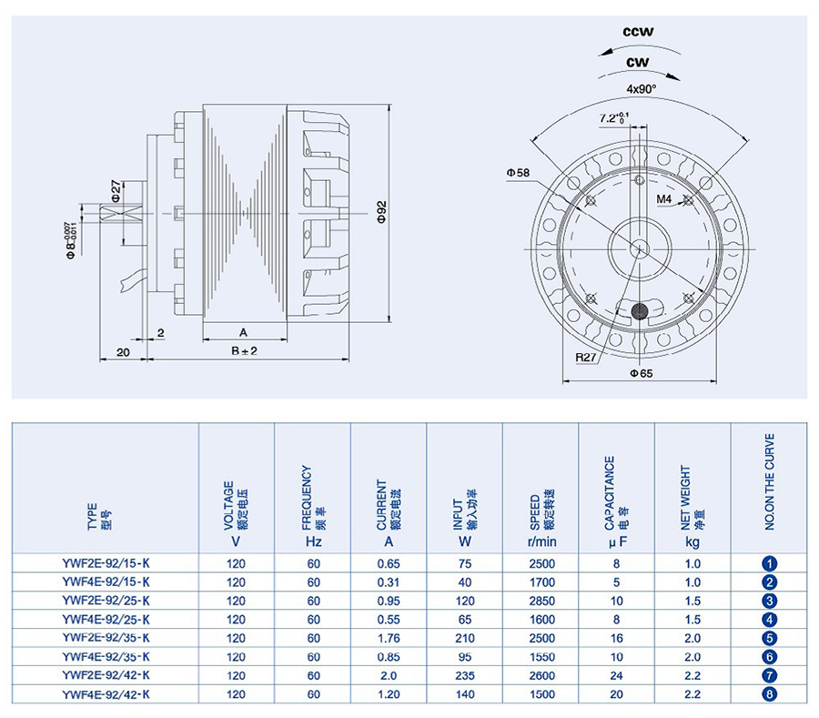 YWF-K92 External Rotor Motors