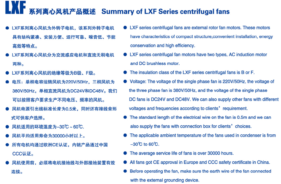 Summary of LXF Series centrifugal fans